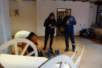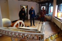 Das nächste Teilprojekt fand im Kleist Forum statt: „Refomation als Geisteraustreibung“ eine rituelle, partizipative Einladung, sich das Haus zu eingen zu machen und es von seinen bösen Geistern zu befreien. Die Perfomance bewegte sich vom Foyer durch den großen Saal, in dem man seine Thesen für das Kleist Forum in Metall hämmern konnte, mit dem rituellen Bannwagen bei der Hintertür des Theaters hinaus, durch den Stadtraum bis zum Fluß, in dem der Bannwagen gereinigt wurde.
